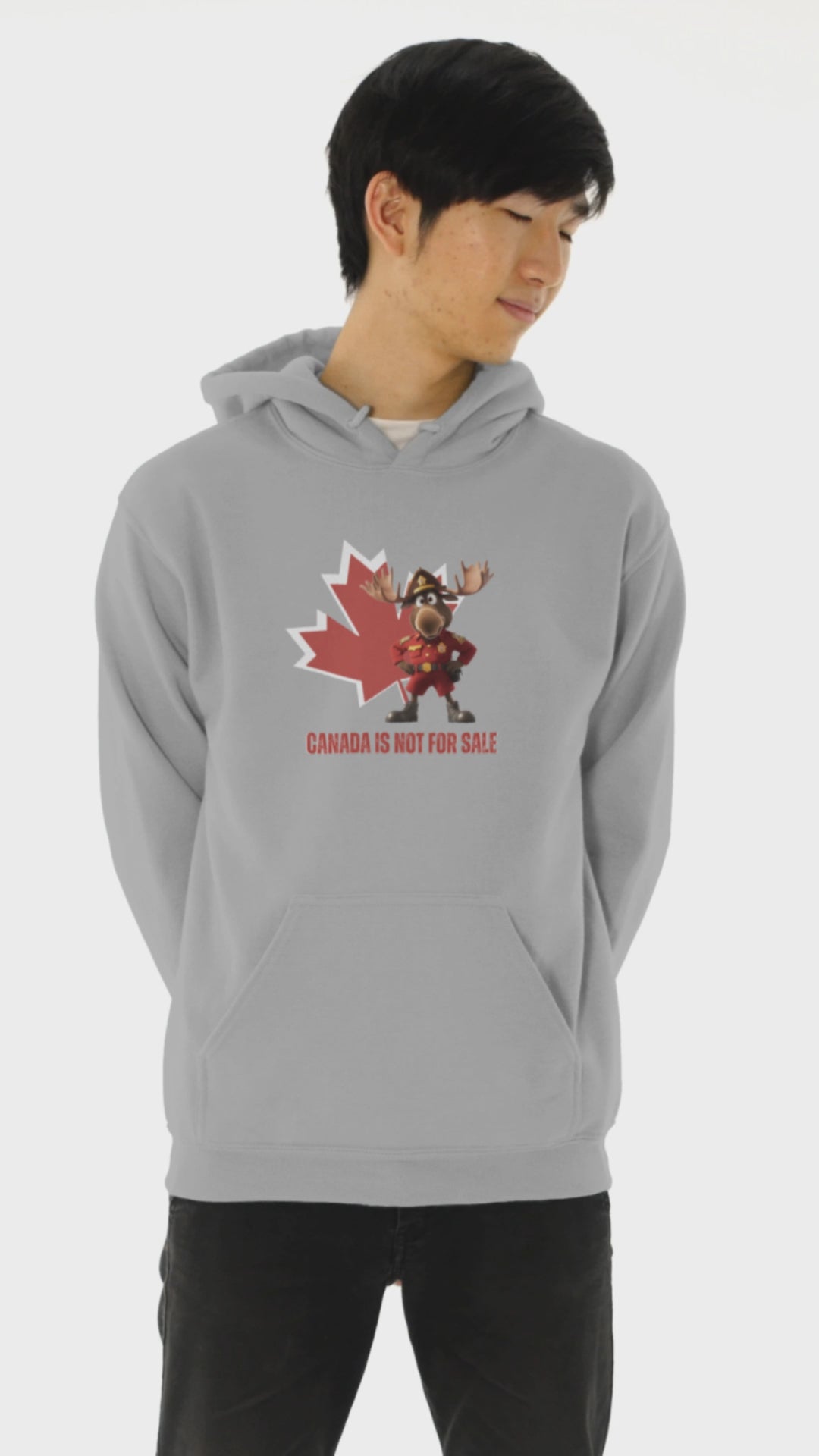 Show your Canadian pride with a touch of humor! This bold and witty design features a cartoon moose dressed as a Mountie, standing guard over the iconic Maple Leaf. With the cheeky yet serious caption, "Canada is Not For Sale", this shirt makes a statement while keeping things lighthearted. Perfect for proud Canadians, lovers of satire, or anyone who enjoys a good 'funny-not-funny' joke. Wear it with pride, eh?