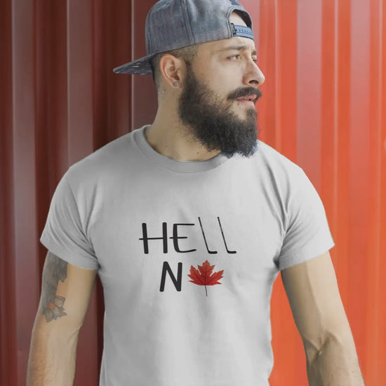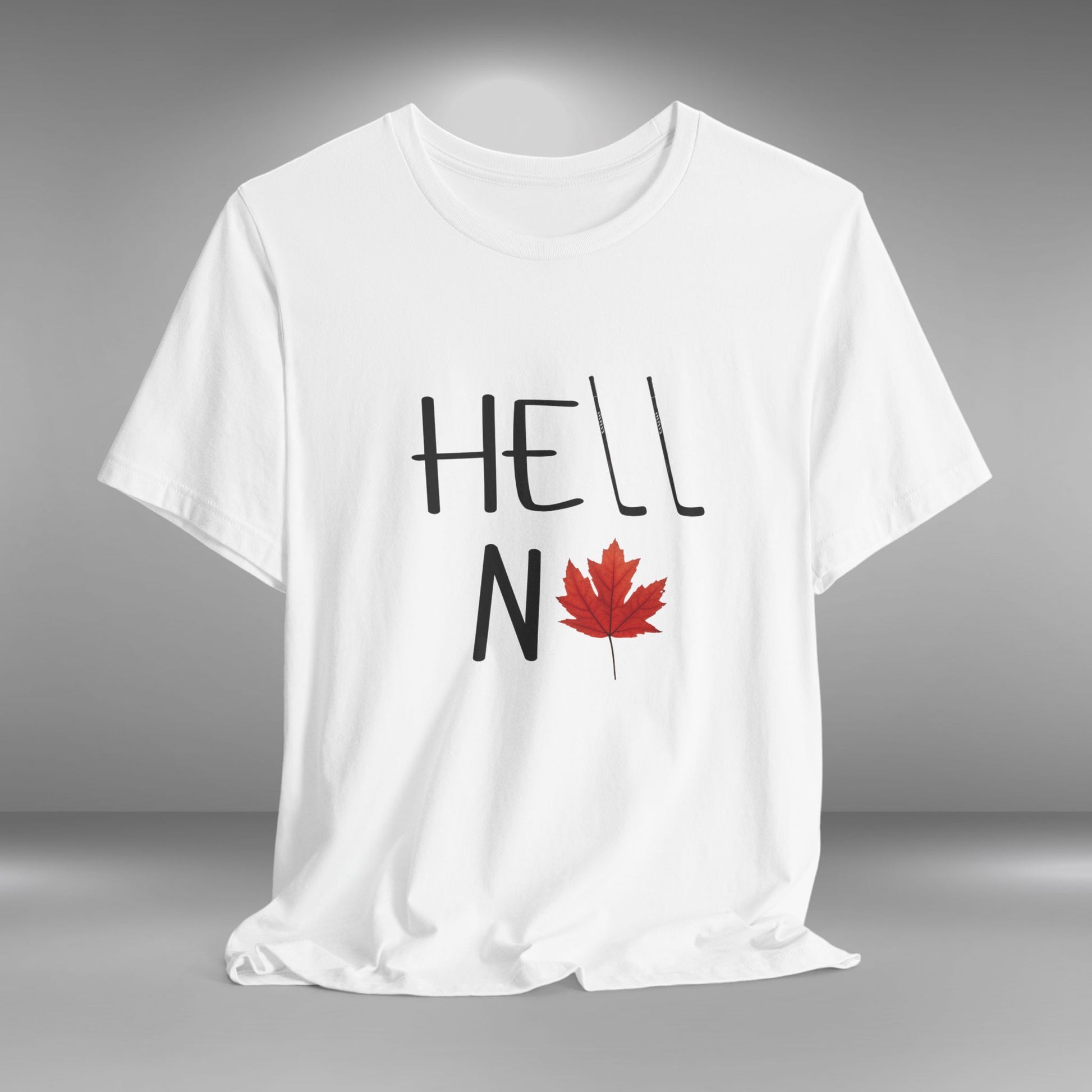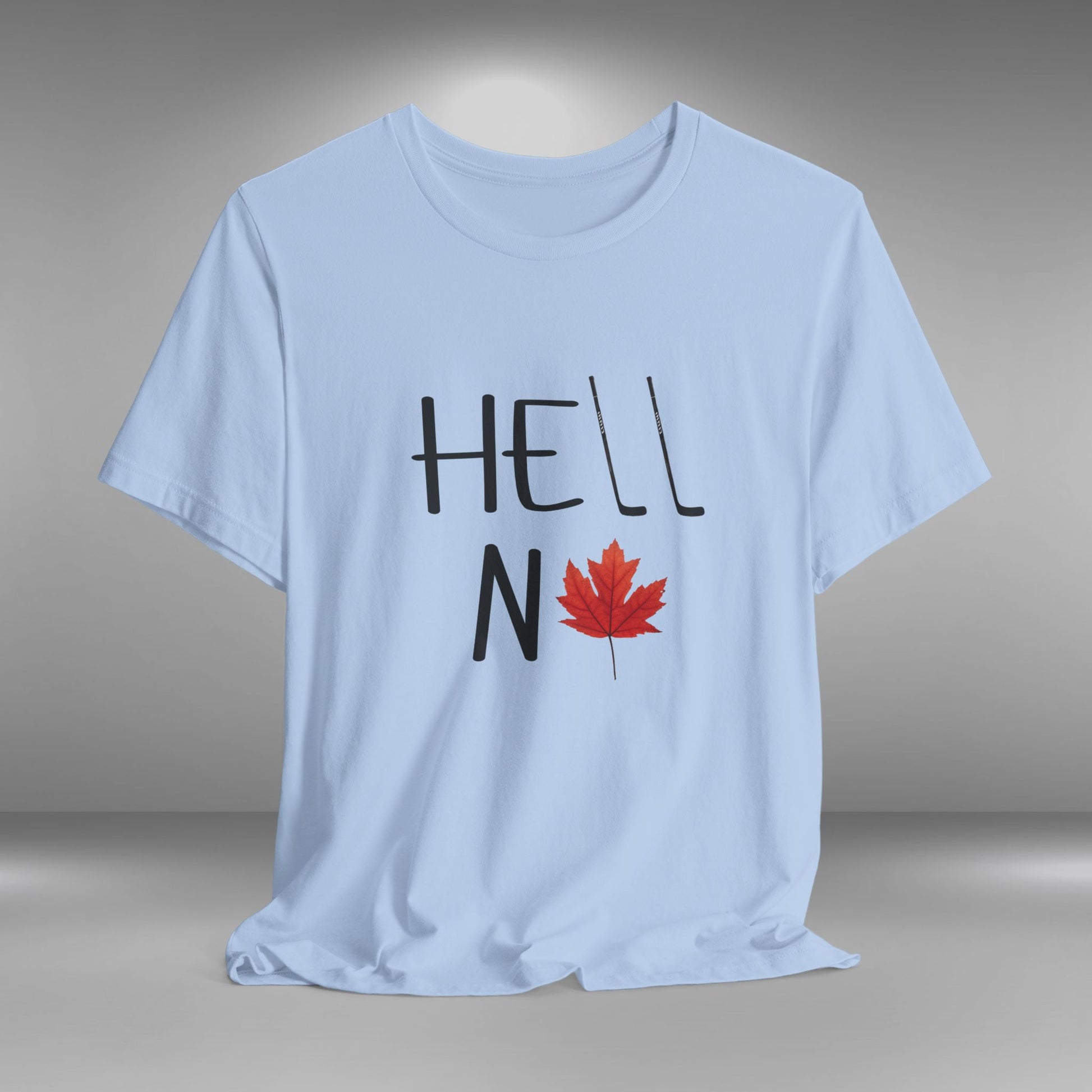 Show off your Canadian pride with this unisex jersey short sleeve tee featuring the saying "HELL, No" with the classic double hockey sticks. Make a fun political statement that Canada is not for sale. Perfect for casual wear and those who love to express their patriotism for Canada. Ideal for holidays like Canada Day and great for anyone who loves Canada.